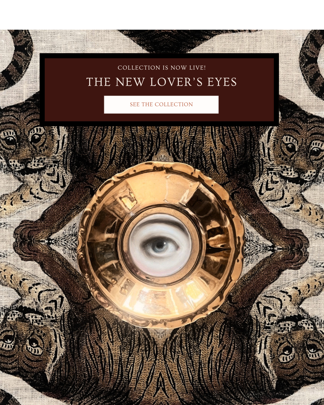 Egyptian wedjet eyes. Apotropaic evil eye talismans. Hindu and Buddhist third eyes. St. Lucy. Ex votos. Renaissance emblems. Queen Elizabeth's spy circle. Masonic symbolism. Alchemy. The All-seeing eye. Lover's eye miniatures. Curiosity cabinet eye models. Optometrist folk signs. The Countess of Castiglione. Post-war surrealism. Pop art. Pop surrealism. Embroidery art. Schiaparelli. Rebus jewelry. John Derian, Astier de Villatte, and other art-meets-homewares designers. Gucci. And many of your favorite contemporary artists.
